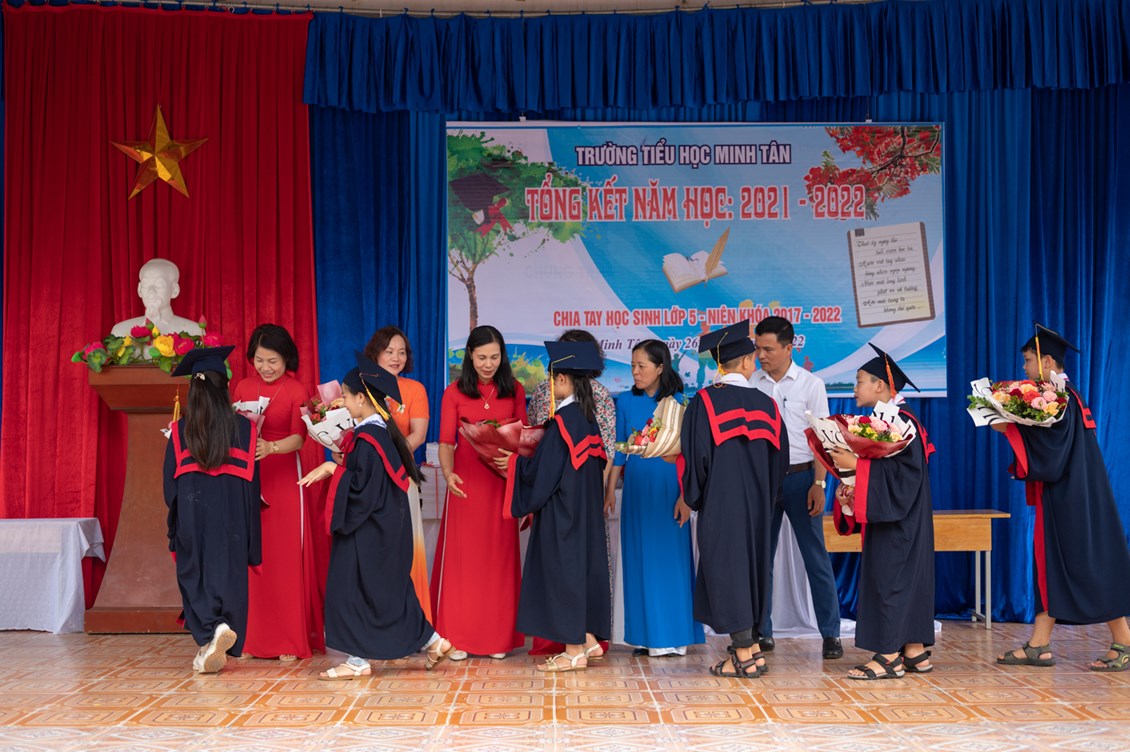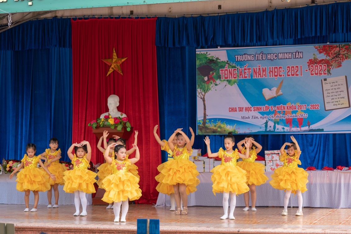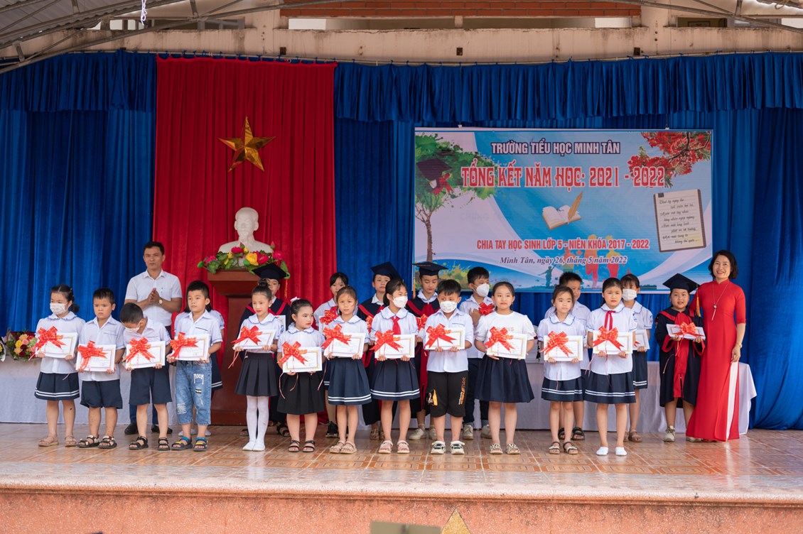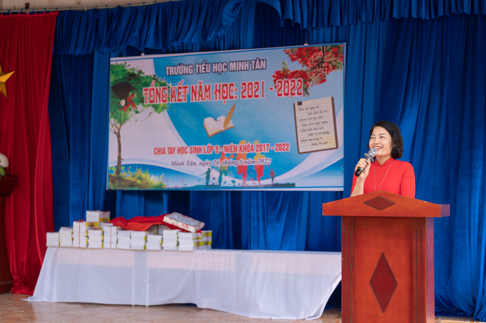 Tại buổi lễ, cô giáo Nguyễn Thị Bích Liên – Hiệu trưởng nhà trường đã thay mặt Ban giám hiệu báo cáo tổng kết năm học 2021 – 2022. Bản báo cáo đã chỉ ra những việc đã làm được của thầy và trò đã năm học vừa qua, đồng thời cũng chỉ rõ những vấn đề cần tập trung phấn đấu trong năm học tới. Nhìn lại một năm đã qua, thầy và trò trường TH Minh Tân đã phấn đấu để đạt được những kết quả tốt đẹp trong công tác dạy và học, hoàn thành xuất sắc nhiệm vụ năm học 2021 - 2022. Trong đó không thể không nhắc tới chất lượng giáo dục của nhà trường được thể hiện qua kết quả của các kì thi Olympic giải Toán bằngTiếng Anh và các cuộc thi vẽ tranh do ngành phát động. Bên cạnh đó, với mục tiêu phát triển toàn diện học sinh và hưởng ứng cuộc vận động “Mỗi thầy cô giáo là một tấm gương đạo đức, tự học và sáng tạo” nhà trường không chỉ quan tâm đến hoạt động giáo dục kiến thức mà còn đặc biệt chú ý đến hoạt động giáo dục đạo đức, giáo dục kĩ năng sống cho học sinh. Vì thế, mặc dù có những thời điểm bị ảnh hưởng bởi dịch bệnh Covid song các hoạt động giáo dục của nhà trường vẫn luôn được đẩy mạnh và phát triển không ngừng, linh hoạt dưới nhiều cách thức khác nhau. Để ghi nhận sự cố gắng của các tập thể và cá nhân, trong buổi lễ, nhà trường đã tiến hành khen thưởng các cá nhân, tập thể đạt thành tích xuất sắc trong năm học vừa qua, tạo nên một không khí rất vui tươi và phấn khởi. Những thành quả đó đã một lần nữa khẳng định sự nỗ lực phấn đấu của thầy và trò trường Tiểu học Minh Tân trong công tác giáo dục đạo đức, tác phong, xây dựng nền nếp của môi trường sư phạm trong sạch và kỷ cương. Năm học cũ đã qua, thầy và trò trường TH Minh Tân sẽ tiếp tục phát huy những thành tích đã đạt được và phấn đấu gặt hái nhiều thành công hơn nữa trong những năm học tiếp theo.