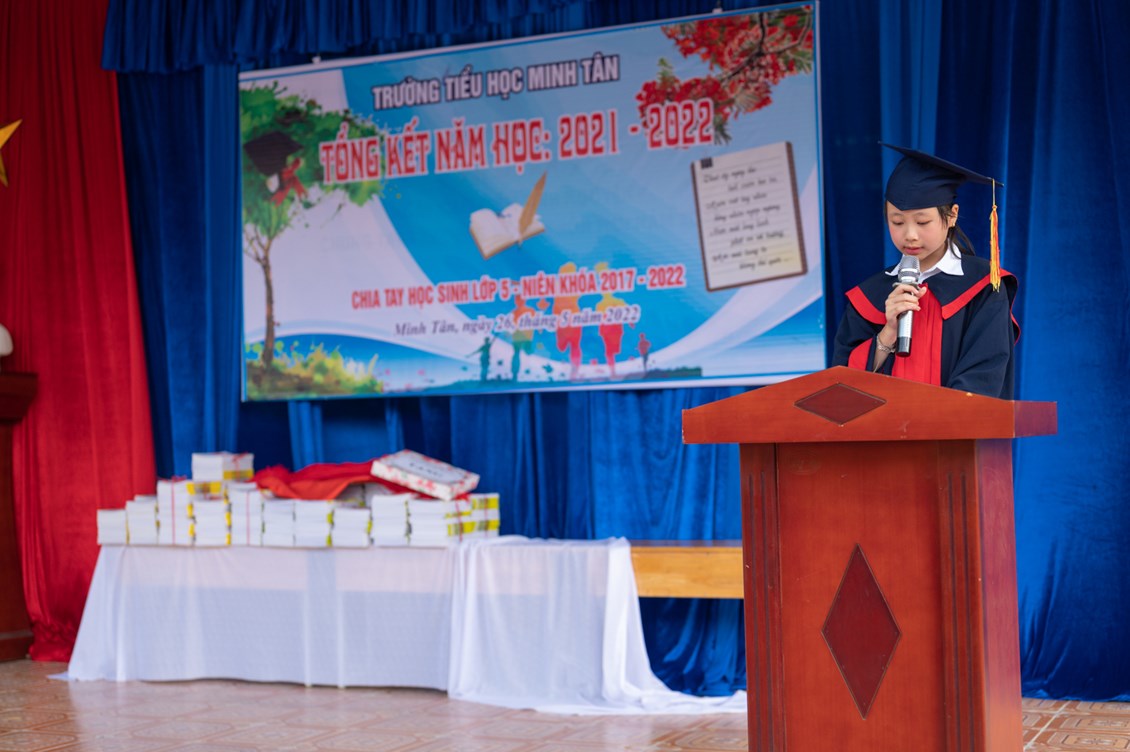 Tiếp theo buổi lễ là phần vô cùng xúc động - CHIA TAY HỌC SINH LỚP 5- 5 năm dưới mái trường Tiểu học đầy ắp bao kỉ niệm, các em HS khối 5 giờ đây như những cánh chim sắp phải rời xa khỏi tổ để tiếp tục vươn cao, bay xa đến những chân trời tri thức mới, ngưỡng cửa cấp 2 đang rộng mở chờ đón các em. Trong giờ phút chia tay mái trường Tiểu học, Em Tạ Lan Anh thay mặt cho 161 em học sinh lớp 5 gửi lời tri ân tới các thầy giáo, cô giáo trước khi ra trường. Buổi lễ khép lại trong không khí bịn rịn của các em học sinh Lớp 5, trong niềm hân hoan của các em học sinh lớp 1,2,3,4. Chúc các em học sinh luôn tự tin, học tập ngày càng tiến bộ và có có một kỳ nghỉ hè thật lý thú và đầy bổ ích. Hẹn gặp lại các em trong năm học 2022 – 2023.