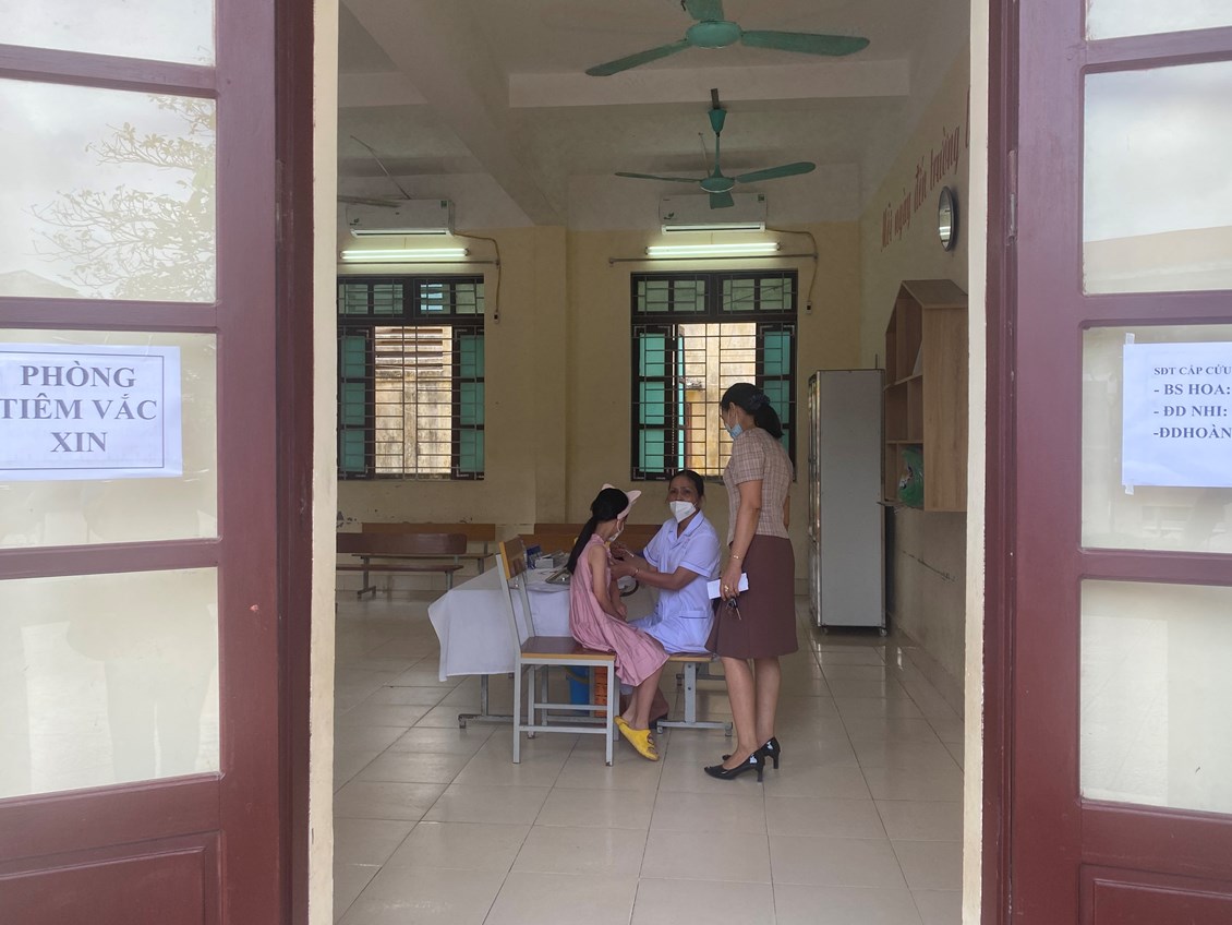 "Trước đó, nhà trường đã chuẩn bị đầy đủ cơ sở vật chất, bố trí các khu khám sàng lọc, phòng tiêm, phòng chờ cũng như khu vực cho phụ huynh ngồi chờ" - Cô Nguyễn Thị Bích Liên - Hiệu trưởng Trường Tiểu học Minh Tân thông tin.